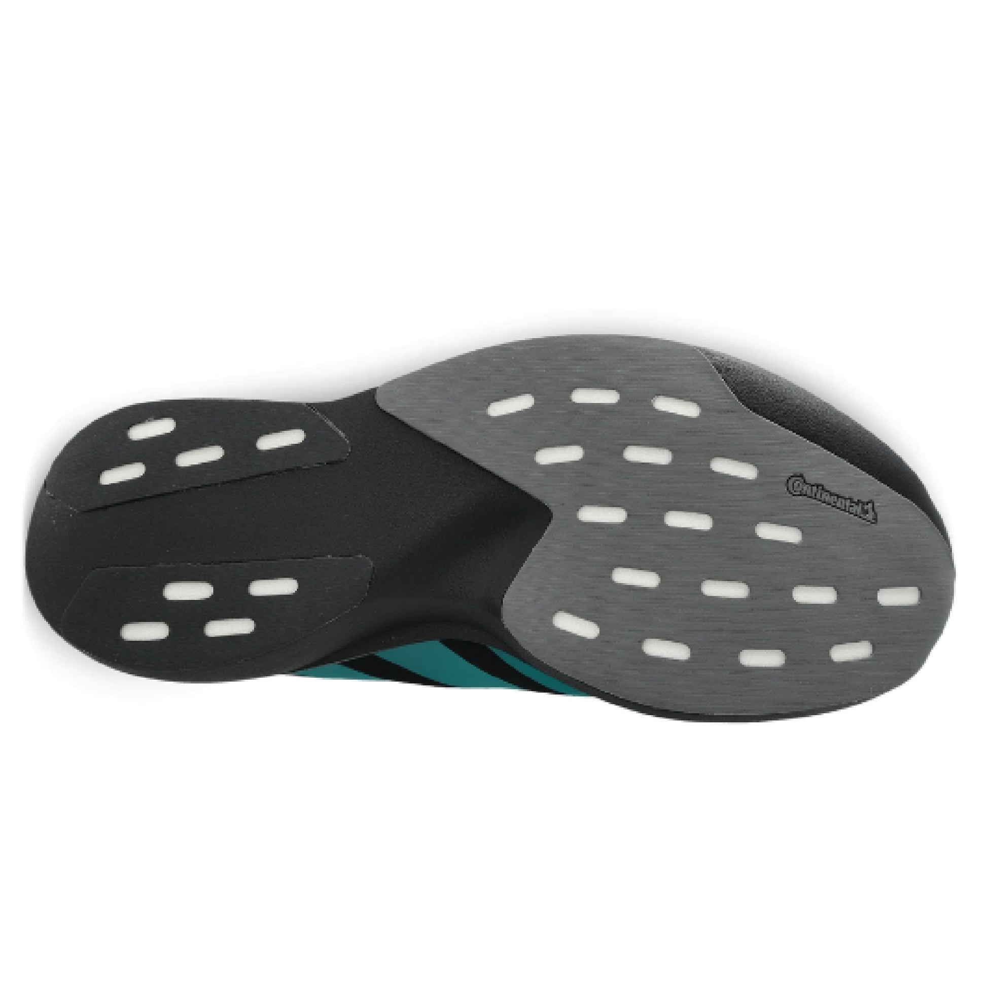 Adidas Adizero EVO SL running shoe in a black colorway with teal stripes.