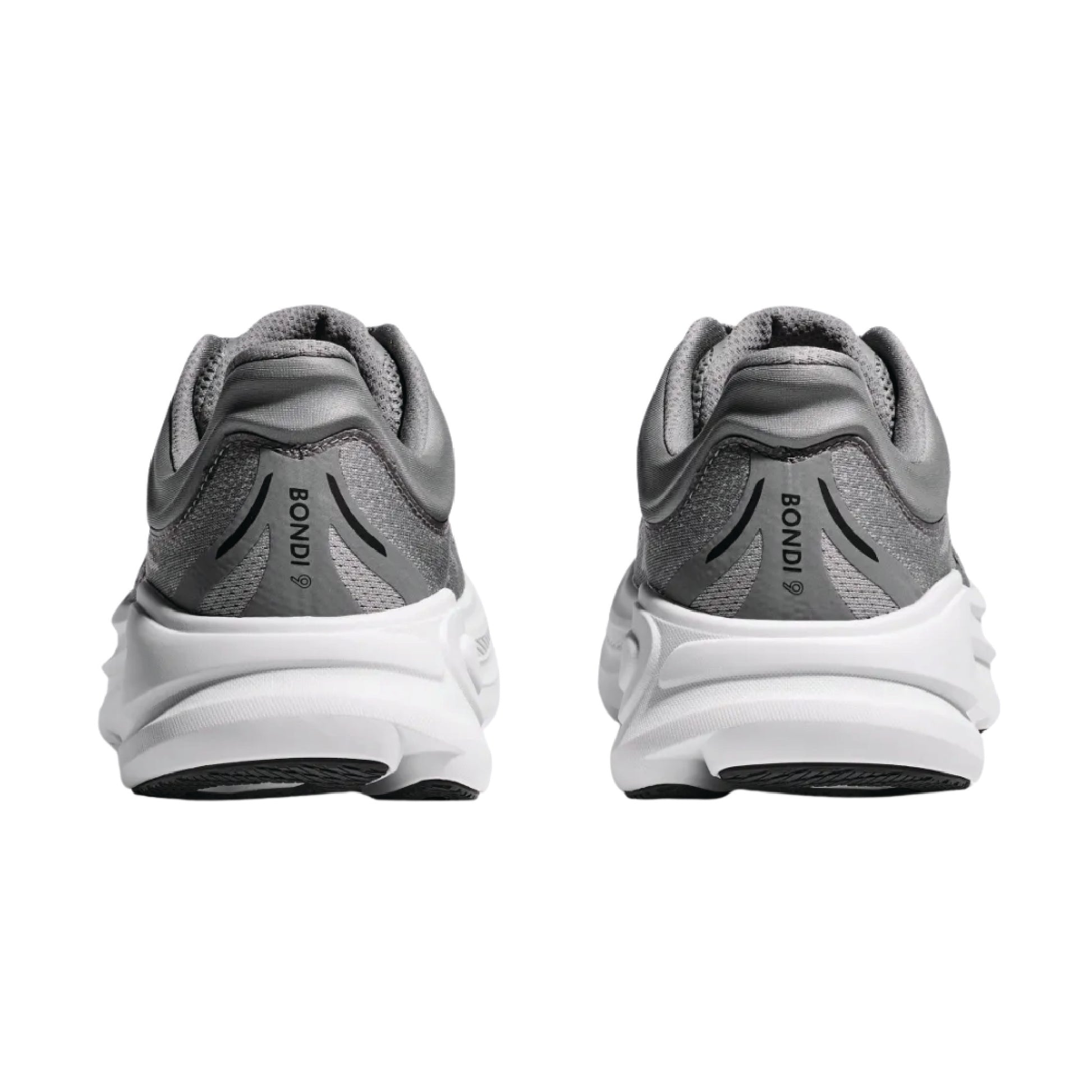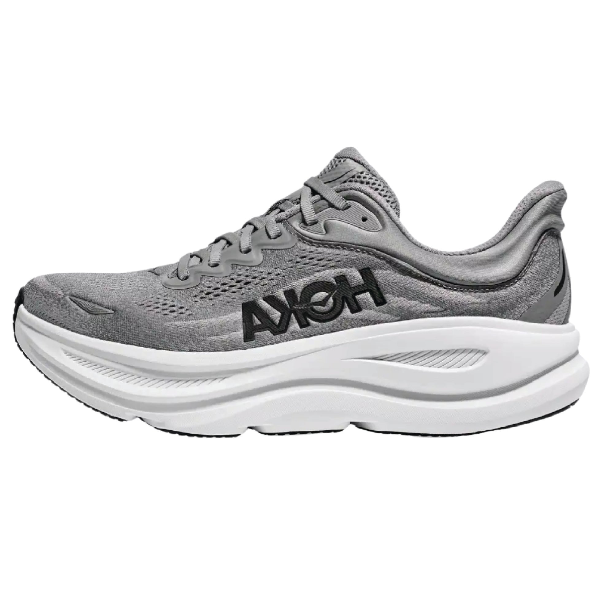 Hoka Bondi 9 running shoe in a grey colourway.